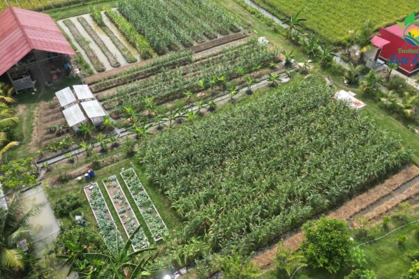 Kebun ini awalnya berisi tanaman pisang yang kurang terawat. Pohon pisang tersebut dibersihkan, kemudian tanahnya diolah dan ditanami jagung. Disela-selanya ditanami kacang hijau. Satu orang tenaga kerja ditempatkan disini. Dibuatkan rumah dan diberikan perlengkapan untuk survival. Tugas utama adalah mengurus kebun mangga sambil menanami pekarangan untuk keperluan hidup sehari-hari. Penghasilan harian didapat dari tanaman kangkung…