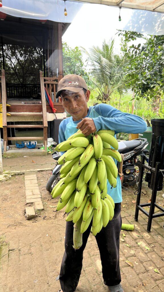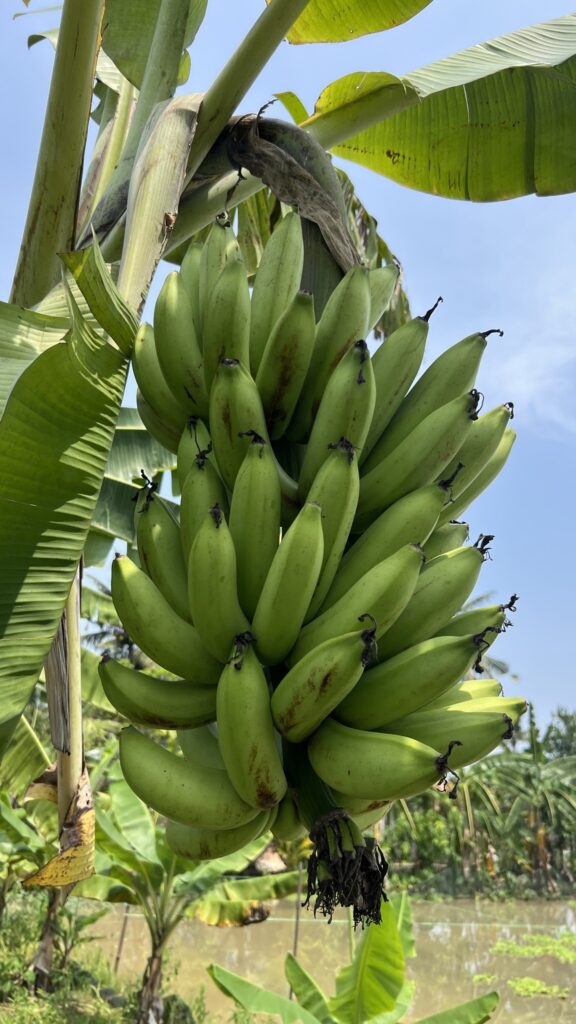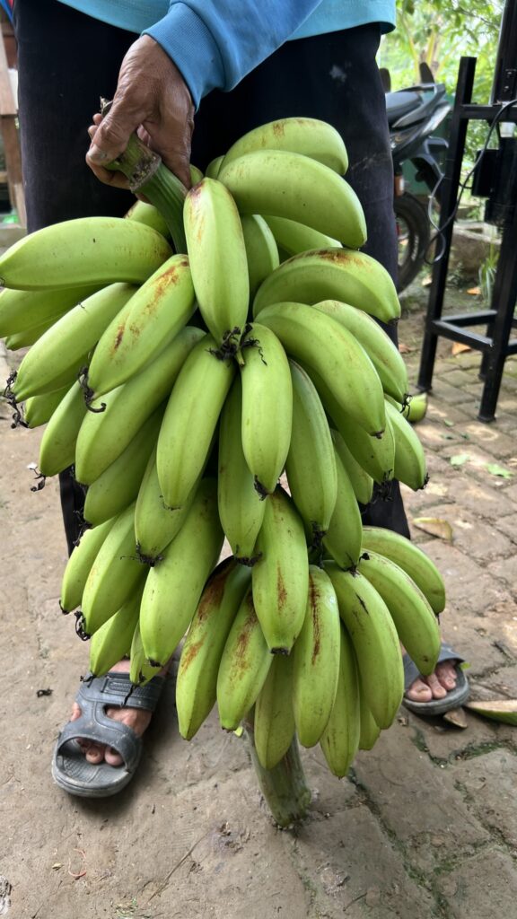 Untuk pisang misalnya, Zeze Zahra menanam beberapa jenis pisang di kebun. Salah satunya adalah pisang Ambon kuning, seperti yang ada di foto. Pisang Ambon kuning adalah pisang lokal yang rasanya pulen dan bisa kuning sendiri tanpa ada cerita apa-apa. Zeze Zahra menanamnya di pinggir selokan di tepian sawah dan kebun. Pisang tersebut dipanen saat usia tua sehingga bisa matang sendiri tanpa harus ditreatment berlebihan.