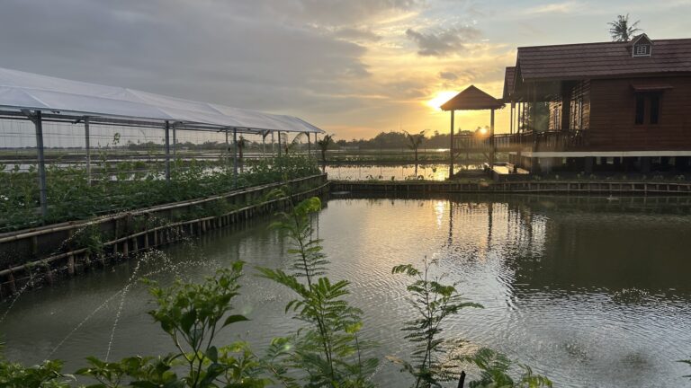 Di Zeze Zahra, saya nggak perlu mendaki gunung, menaiki jip atau menuruni lembah hanya untuk melihat sunrise. Kalau lagi beruntung, sunrise bisa dilihat sambil berkebun atau memberi makan ikan.