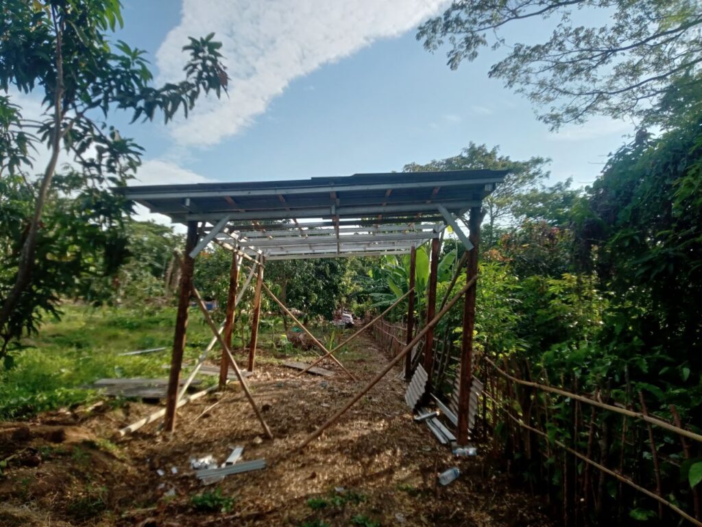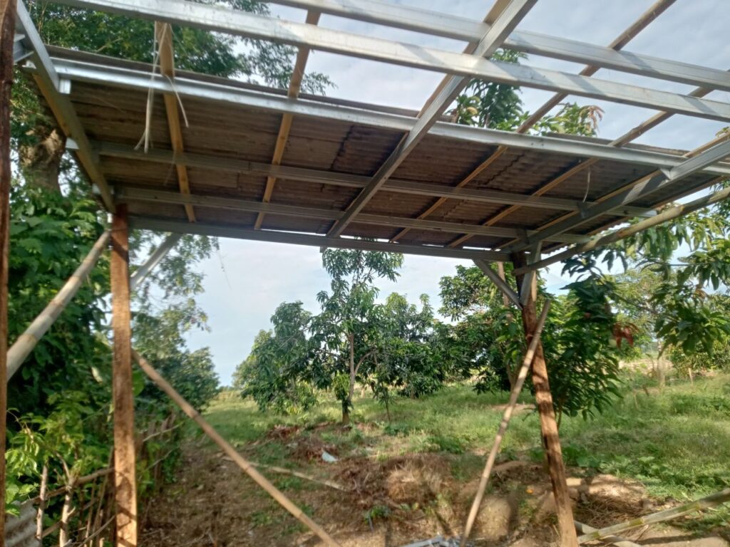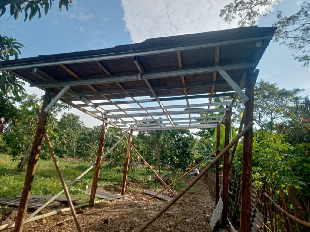 Salah satu kebutuhan untuk kebun adalah pemupukan secara berkala. Pemupukan di kebun mangga ini diset satu bulan sekali. Untuk keperluan tersebut, Zeze Zahra membuat naungan sederhana menggunakan bahan yang ada.