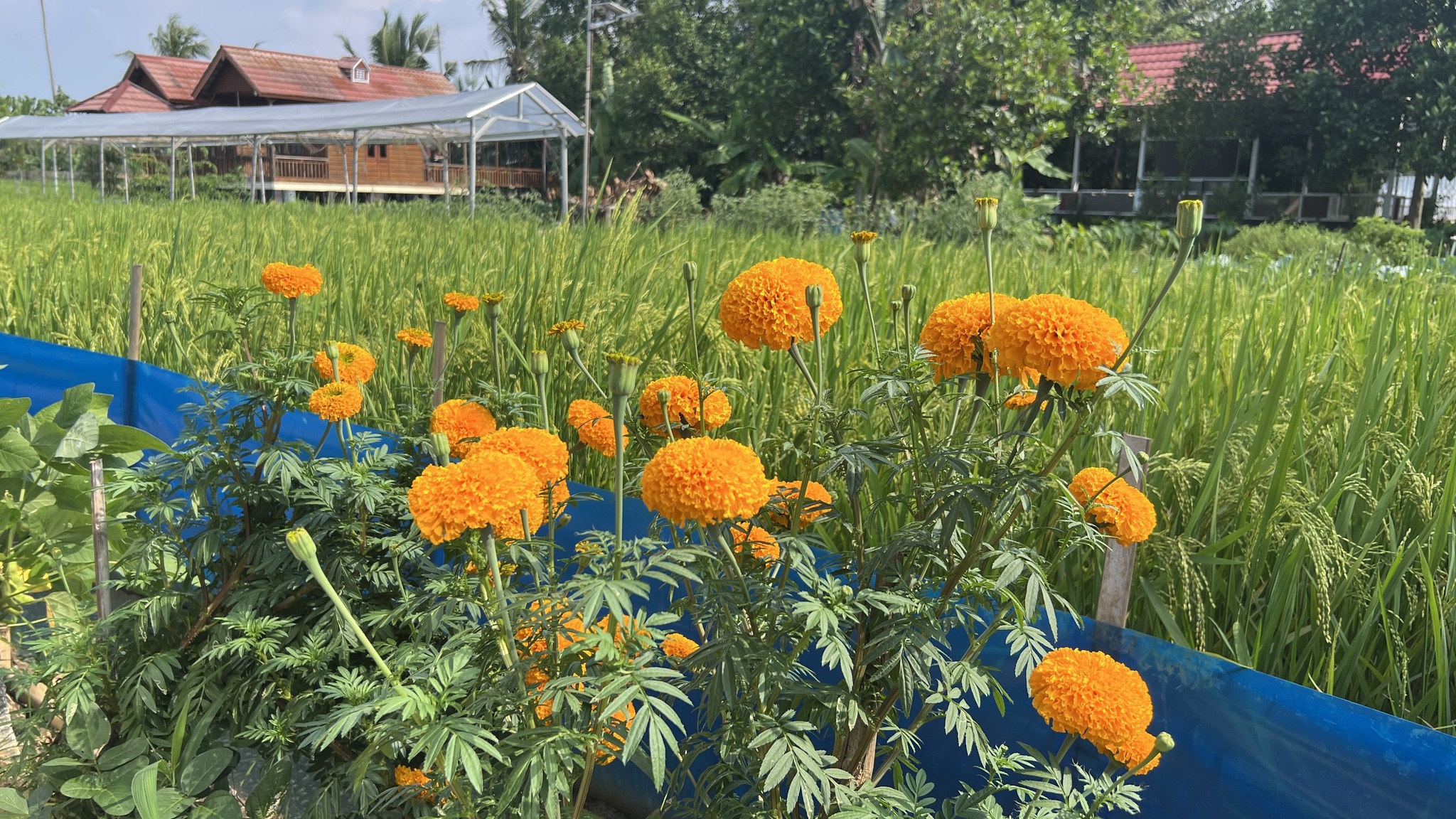 Lapisan atas media tanam menggunakan sekam bakar dan kompos padat (pupuk kandang), kemudian disiram dengan pupuk cair.