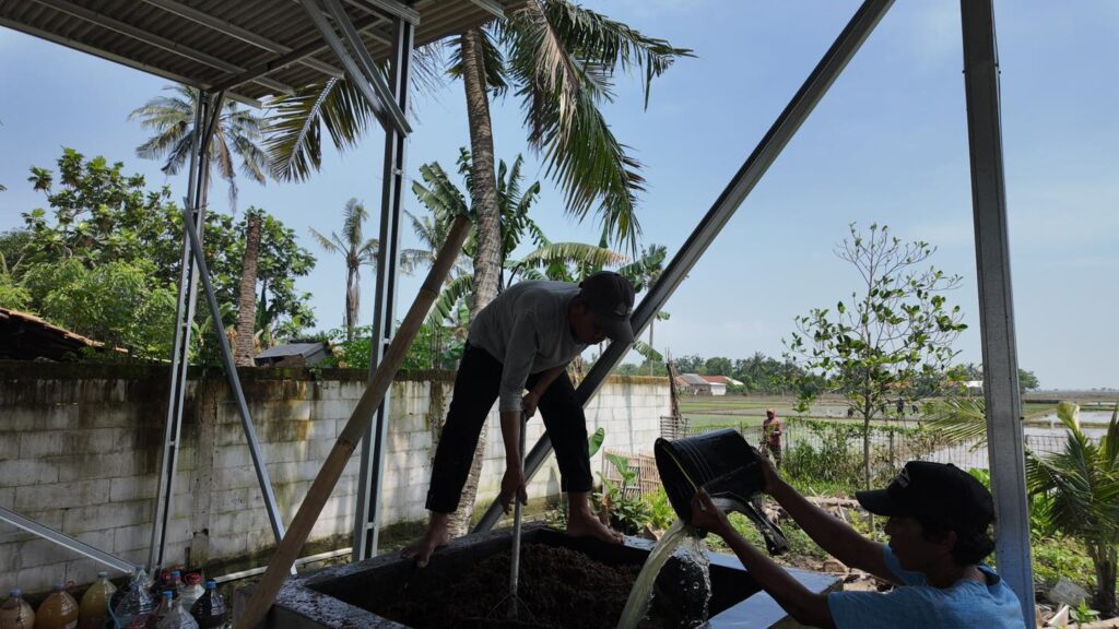 Awalnya Zeze Zahra ingin membuat lubang pengambilan hasil pupuk di bagian bawah, namun batal karena kontur tanahnya berair. Baru digali sedikit saja sudah keluar air. Akhirnya kolam bak pembuatan pupuk dibuat agak tinggi keatas, namun tetap mempertimbangkan tinggi media pupuknya (pupuk horti direkomendasikan tinggi maks 70 cm). Sementara waktu format seperti ini agak menyulitkan karena mulut bak jadi cukup tinggi sehingga nantinya akan dibuatkan semacam tangga disisi dinding bak.