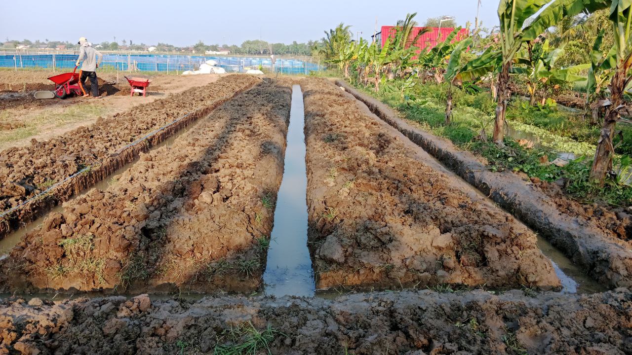 Pekan ini Zeze Zahra masih meneruskan pekerjaan pembuatan bedengan. Parit diperlebar dan diperdalam, lumpurnya dijadikan sebagai bahan untuk menambah media tanam. Nantinya bagian atas akan ditambah dengan kompos padat hasil fermentasi kohe ternak. Setelah itu disiram dengan pembenah tanah.