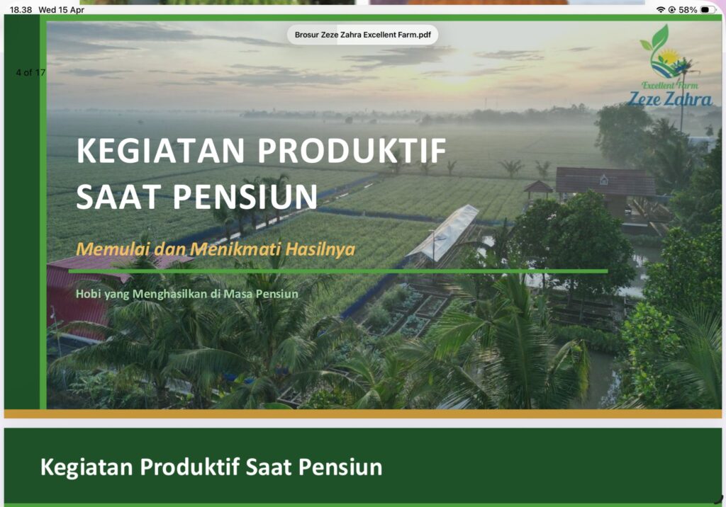 Jadi rencananya dari perusahaan akan mengirimkan sekitar 35 orang staff untuk farm visit dalam rangka MPP. Mereka mendapat pembekalan sebelumnya terkait materi finansial, kegiatan pasca pensiun, ide usaha dan lain-lain. Di Zeze Zahra, kami tinggal melengkapinya dari sisi apa yang ada di kami, yaitu terkait pertanian dan peternakan terpadu.
