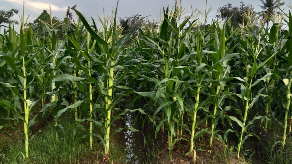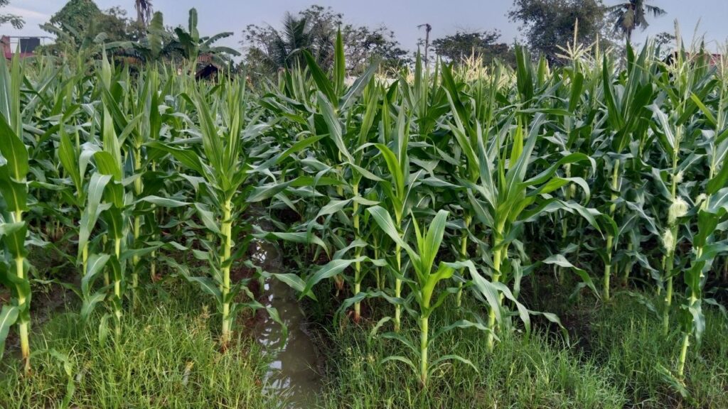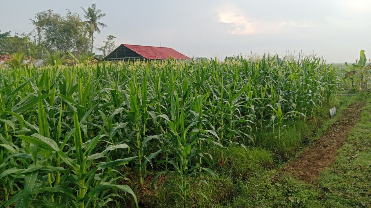 Tanaman jagung yang ada di lahan tidak hanya dipanen hasilnya, tetapi batang dan daunnya juga dimanfaatkan sebagai sumber pakan untuk ternak. Sebaliknya, kotoran dari sapi dan kambing diolah kembali menjadi pupuk organik untuk membantu menutrisi tanah di kebun jagung.