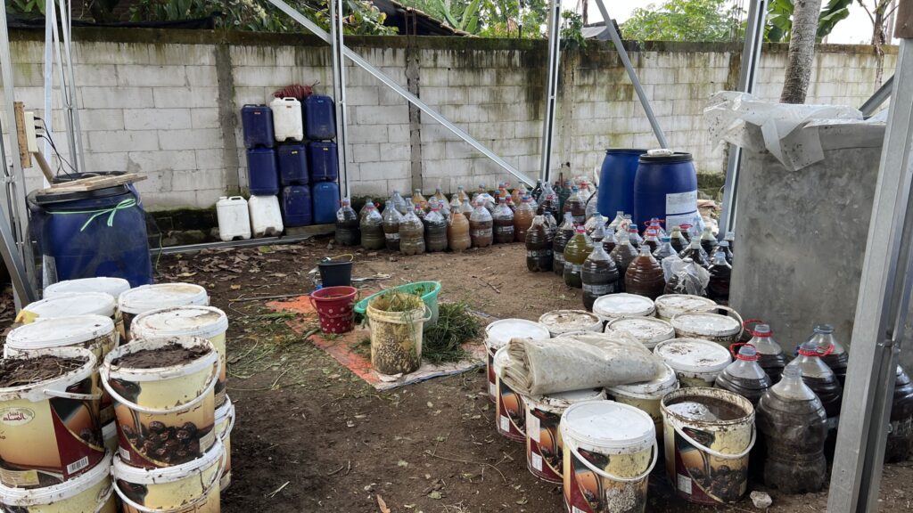 Gudang pupuk di lingkungan Zeze Zahra saat ini sudah mulai difungsikan. Zeze Zahra sebelumnya mengumpulkan air cucian beras, kohe ayam dan kambing serta urine kambing dari peternakan sendiri. Hanya kohe sapi dan urine sapi yang didapatkan dari luar, karena Zeze Zahra belum memiliki peternakan sapi.